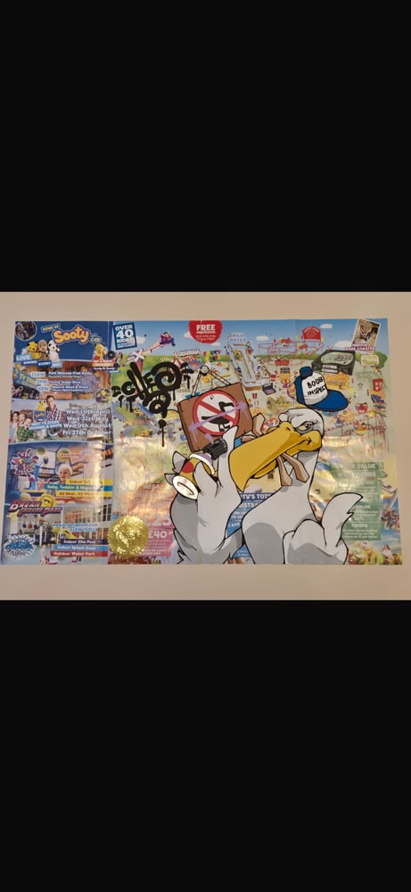 Limited BIN RAIDER Painted on Brean Map 25.5cm by 39.5cm Cheo Character Signed and Stamped